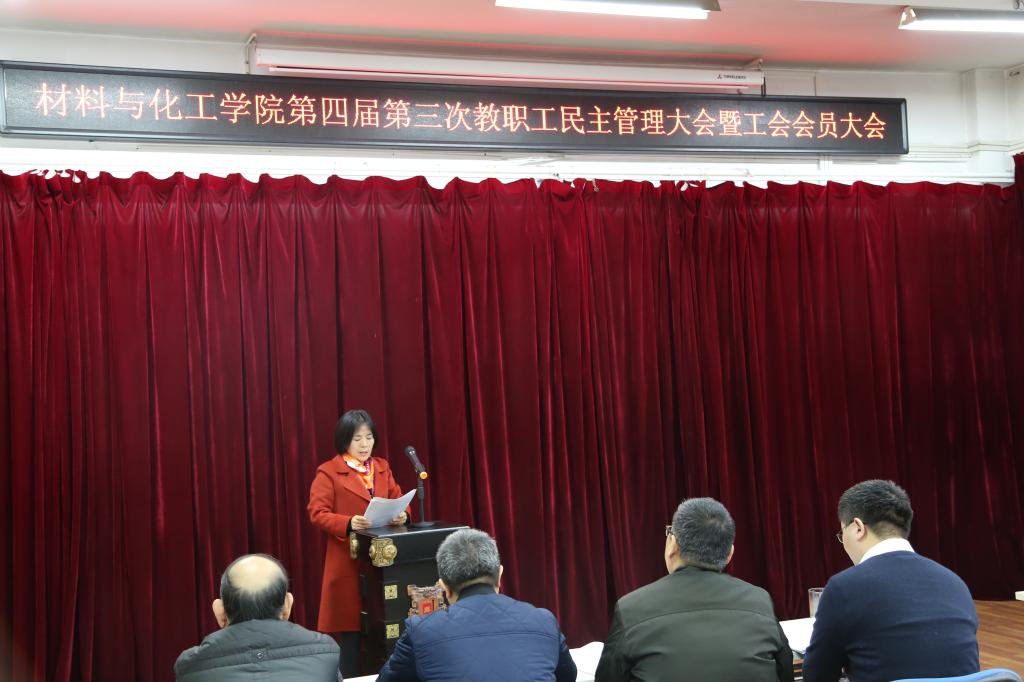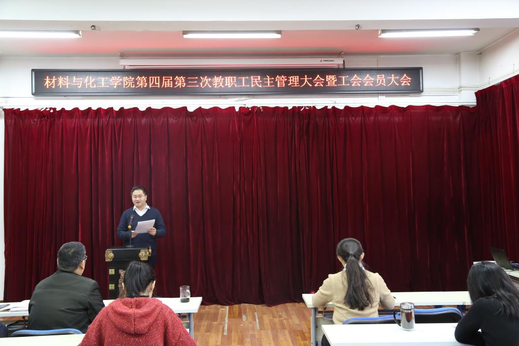 12月31日,材料与化工学院第四届第三次教职工民主管理大会暨工会会员大会在543会议室隆重召开,学院和先进材料研究中心全体教职工参加会议。会议由材料与化工学院分工会主席刘英主持。