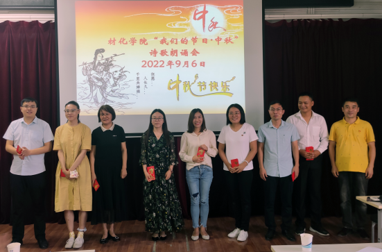 九月丹桂飘香,中秋节、教师节相伴而至。为使广大教师度过一个喜庆、祥和的“双节”,9月6日材料与化工学院组织开展了“我们的节日·中秋”诗歌朗诵会。学院党政领导班子及全体教职工参加了活动。学校机关党委、学报编辑部等部门的材化大家庭成员应邀出席活动。