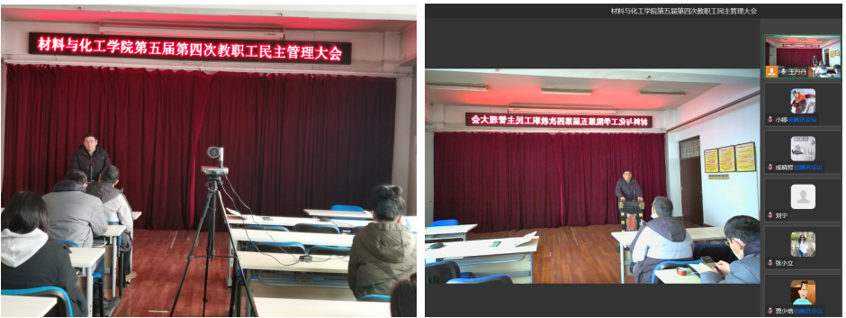 1月5日,材料与化工学院召开第五届第四次教职工民主管理大会暨工会会员大会,会议采用“线上+线下”的方式举行,学院和先进材料研究中心全体教职工参加会议。会议由材料与化工学院分工会主席张艳丽主持。