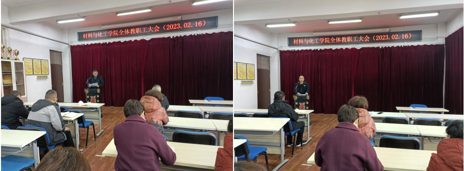 2月16日上午,材料与化工学院在2号实验楼543会议室召开全体教工大会,传达学校2023年工作会议精神,安排部署学院2023年重点工作。全院教职工参加会议。