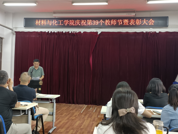 金秋送爽,丹桂飘香。9月5日下午,材料与化工学院在2号实验楼543会议室召开庆祝第39个教师节暨表彰大会,学院全体教职工参加会议,会议由学院党委副书记熊瑛主持。