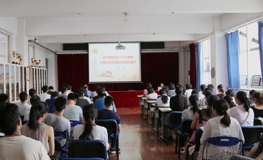 2018年 7月6日下午,党的十九大代表、河南省科学院化学研究所有限公司副研究员王静同志应邀来材料与化工学院做“学习贯彻党的十九大精神,依靠科技创新驱动美丽中国梦”专题讲座,校党委组织部副部长刘程与我院教师及部分学生代表参加。报告会由材料与化工学院党总支书记杨佩主持。