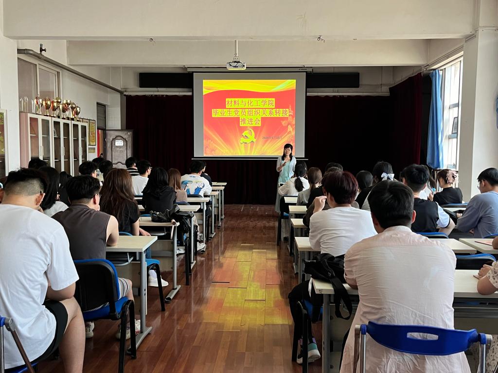 为加强对2024届毕业生党员的教育管理,规范党员组织关系转接程序,完善毕业生党员档案整理等工作,2024年5月10日下午,材料与化工学院召开毕业生党员组织关系转接推进会,会议由学院党委副书记熊瑛主持,学院科级组织员洪潇、全体毕业生党员参加会议。