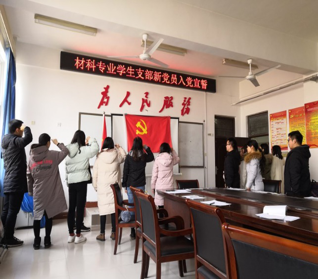 近期,材料与化工学院各个学生党支部于1月11日至14日在二号实验楼543和526分别举行“预备党员入党宣誓大会”。参加会议的有我院各学生党支部书记和全体学生党员。