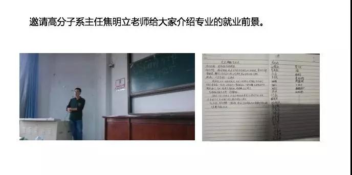 高分子15级班主任邀请老师给学生介绍专业的就业前景,让学生提前了解就业形势,并开展就业调研团日活动。