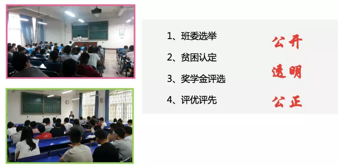 班委选举、贫困认定、奖学金评选、评优评先,班主任做到公开、透明、公正。