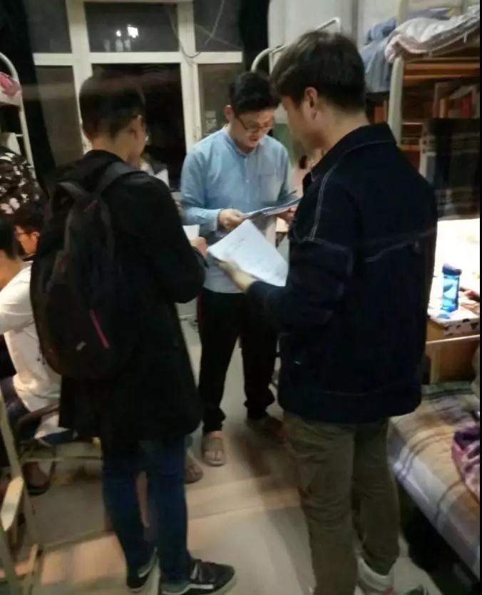 各班主任老师及学院团总支成员走访15级学生宿舍,就材化学院考研调研活动做后续的问卷收集工作。