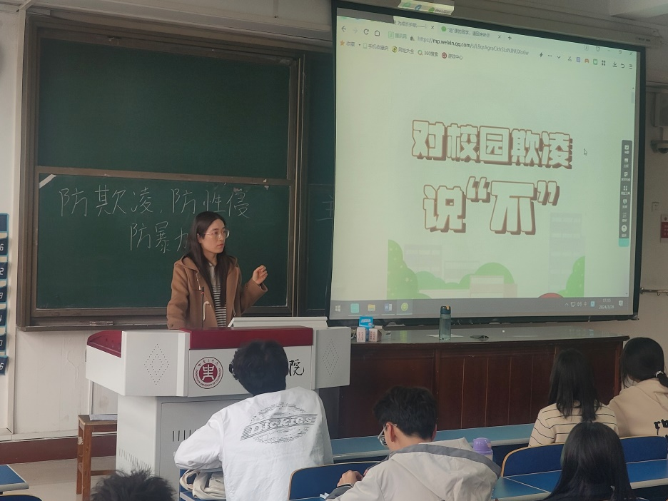聚焦防范校园暴力,营造和谐育人氛围。各班班主任积极开展防范校园欺凌主题班会,对校园欺凌的表现形式及特点、惩治“校园欺凌”的法律法规和如何预防校园欺凌等方面进行了详细讲解。告诫同学们要从案例中吸取教训,在日常生活中宽厚待人,掌握应对校园暴力的正确方法,学会保护自己。