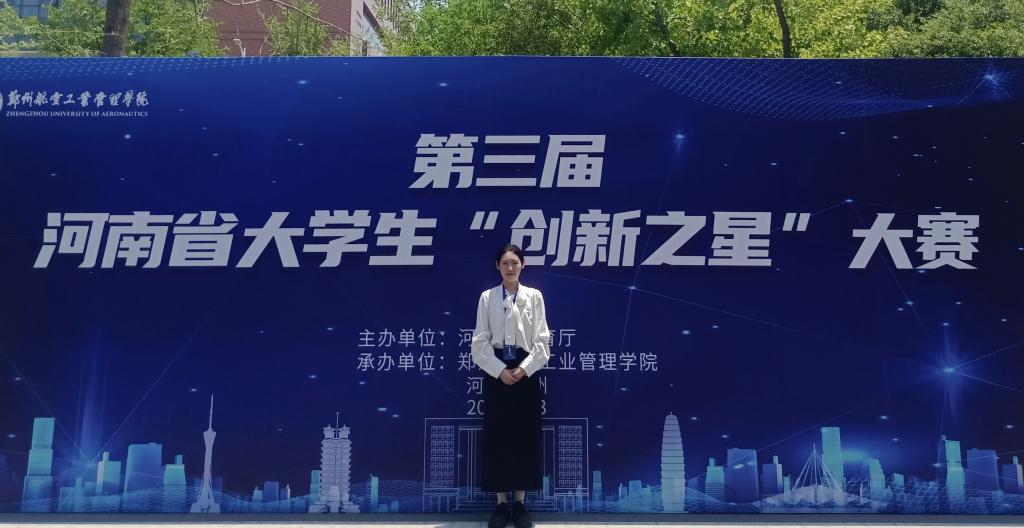 为了挖掘自己的创新潜能,她组建团队积极参加各类创新创业大赛。共获省级奖项2项,校级奖项1项,包括首届全国大学生职业规划大赛河南省总决赛铜奖、河南省“挑战杯”大学生课外学术科技作品竞赛二等奖、河南省大学生创新创业训练计划项目省级立项、第九届中国国际“互联网+”大学生创新创业大赛竞赛优秀奖等、郑州市求职技能大赛英国威廉集团校赛二等奖。