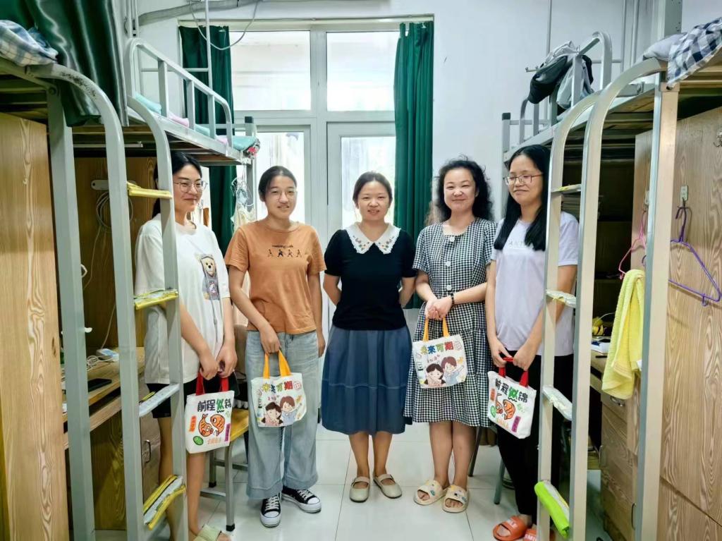 慰问活动中,熊瑛叮嘱同学们夏季高温注意防暑降温,增强防汛安全意识,提高风险认识和应变能力。走访宿舍期间,对学生宿舍安全卫生状况进行检查,提醒同学们高温时期要注意灭蚊用品和用电安全,养成良好的生活习惯,保持宿舍整洁卫生,营造文明和谐环境,以良好的精神状态认真复习备考。刘瀚为同学们送上精心准备的“清凉大礼包”,包含贴有励志标语的可口可乐、扇子、书签、文具、明信片等,清凉礼包不仅是学院给考研学子的一份礼物,更是在“热情似火”的季节送上一份最“清凉”的期许与鼓励,正如可乐上所写“分秒必争、拼搏进取、乘风破浪”一样,希望它能伴学生度过三伏酷暑,在学习疲惫懈怠的时刻,带来一份清爽与慰藉。