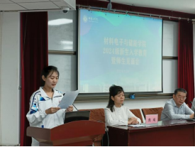 2024级新生代表张卓涵发言,她代表新生向关心关爱自己的老师和学长学姐表达敬意和感谢,表示将秉持勤奋与好学的精神,以坚定的步伐迎接学习道路上可能遇到的每一个挑战,不断追求卓越,力求在未来的日子里取得令人瞩目的优异成绩。