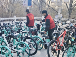 同时,同学们还主动承担起了共享单车的规整摆放任务。他们将散乱停放的单车一一归位,排列得井然有序,为师生的出行提供了极大便利,也让校园更加整洁美观。
