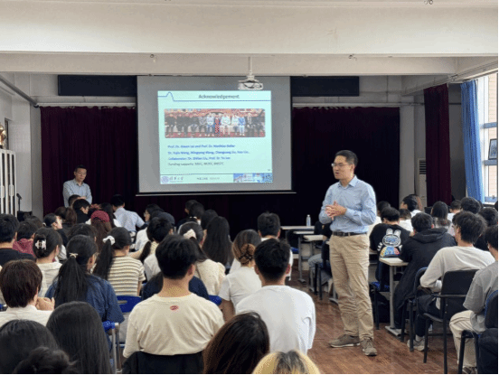 5月10日,学院邀请清华大学博士生导师、国家杰出青年科学基金获得者刘强教授和王定胜教授在2号实验楼543室作了精彩的专题学术报告。报告围绕“单原子电合成”展开分享,强调了金属纳米、团簇及单原子催化剂在揭示催化本质方面的重要性,诠释“工匠精神”在新能源领域的核心价值,学生纷纷表示对专业使命有了更深理解。