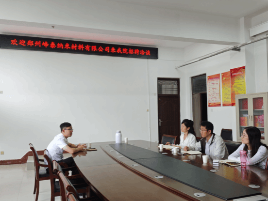 9月12日上午,郑州峰泰纳米材料有限公司行政经理李东晓一行来我院招聘洽谈。学院党委副书记熊瑛、高分子系主任宋梦、2026届毕业班辅导员惠显帅参加座谈。