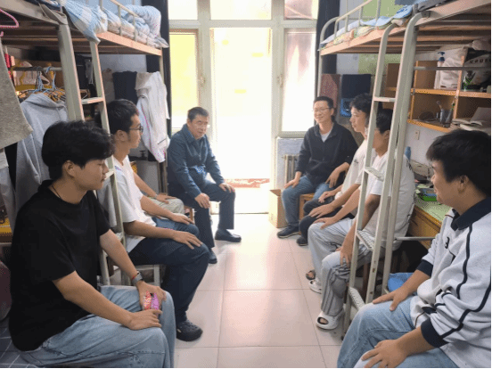 走访过程中,学院党委书记李长林代表学院欢迎新生加入材电学院大家庭,亲切询问新生入学后的适应情况,详细了解同学们的学习生活状况,并耐心解答大家提出的问题。他勉励新生深潜知识海洋,珍惜宝贵韶华;于独立思考中成长,在互励共行中发光。同时,李长林叮嘱新生要尽快熟悉校园环境,主动融入集体生活,并向全体新生致以双节的美好祝福。