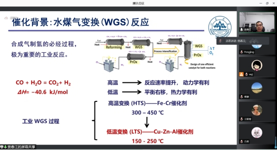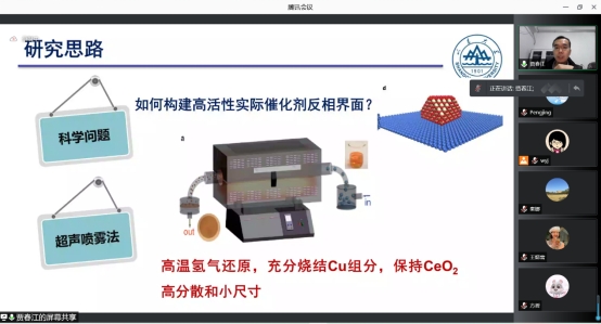 报告会上,贾春江教授首先介绍了工业催化及稀土催化应用,高效负载型催化剂材料的发展与挑战。然后,贾春江教授分析了“结构烧结”与“活性位点”的矛盾,转变思路,改变催化剂制备策略,从而实现烧结催化剂中高效活性位点的构建。贾教授详细讲解了烧结载体实现催化材料表面重构、及烧结活性金属构建稳定的体相-纳米界面的两条路径,并将这类稀土催化材料用于水煤气变换反应体系,Cu-CeO2催化剂实现了水煤气的高效变换。最后,贾教授总结了近年来课题组在CeO2-CuO催化剂结构演变、还原处理构造体相-纳米界面、催化性能及原位催化表征表界面结构缺陷等研究工作。