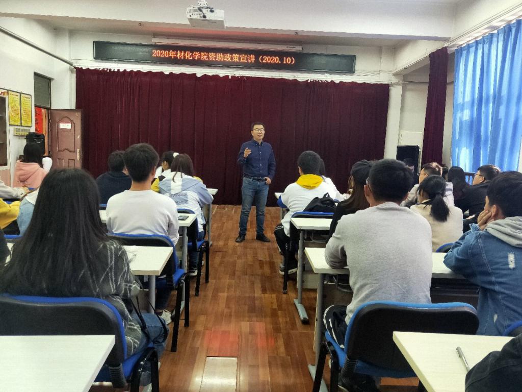 为使同学们进一步了解国家资助贷款政策、让国家资助政策更好发挥其作用,2020年10月15日中午,材化学院学工办主任邢军阳在二号实验楼543 为申请高校助学贷款同学进行资助政策宣讲,解答学生关于高校贷款疑惑。