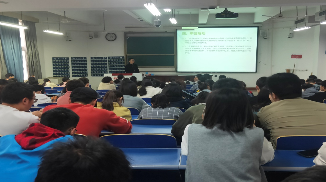 结合毕业生涉及诚信的事情——在校期间申请的国家助学贷款,邢老师鼓励有还款能力的学生在毕业前还款,既可以避免毕业后因忘记还款还息造成不必要的麻烦,也可以参与学校毕业之际发起的诚信活动,取得荣誉称号为自己增光添彩。