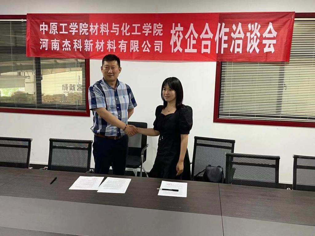 2021年7月13日,我校材料与化工学院与河南杰科新材料有限公司签订实习基地共建合作协议。双方按照“真诚合作、资源共享、重点推进、互利共赢”的原则,发挥各自优势,通过多形式、多层次的交流与合作,建立长期稳定的合作关系,共同推进材料与化工学院和河南杰科新材料有限公司快速发展。