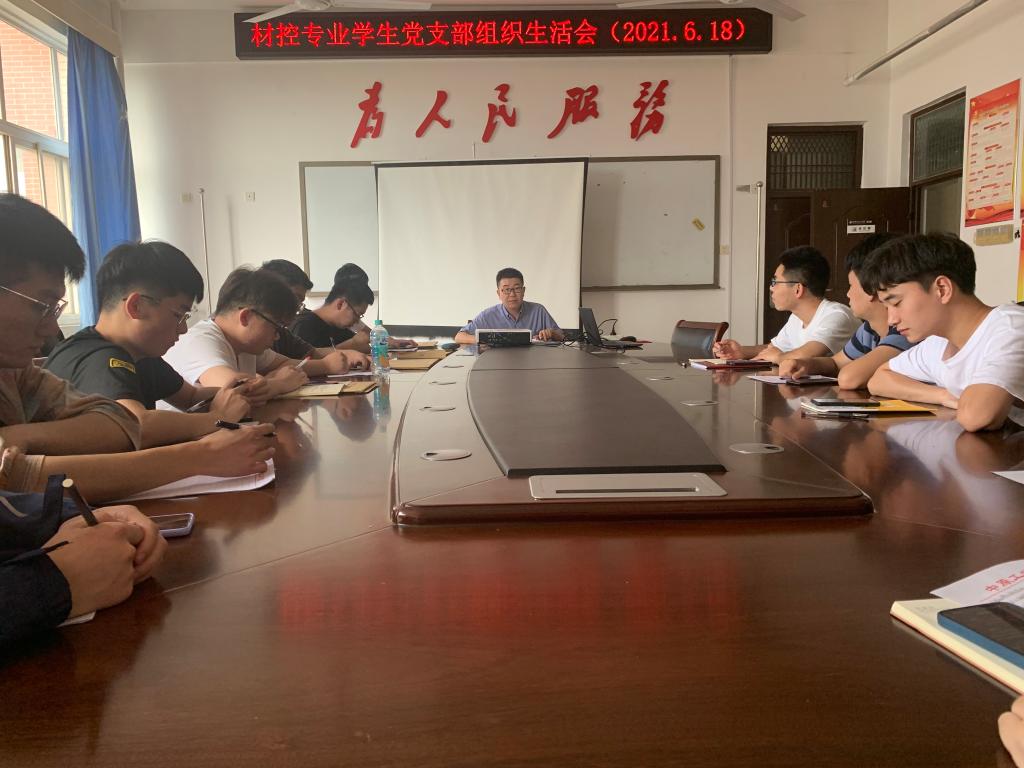 6月18日,材控专业学生党支部在2号楼526召开支部组织生活会,材控学生党支部应到会26人,实到24人(其中正式党员5人),会议由党支部书记邢军阳主持。